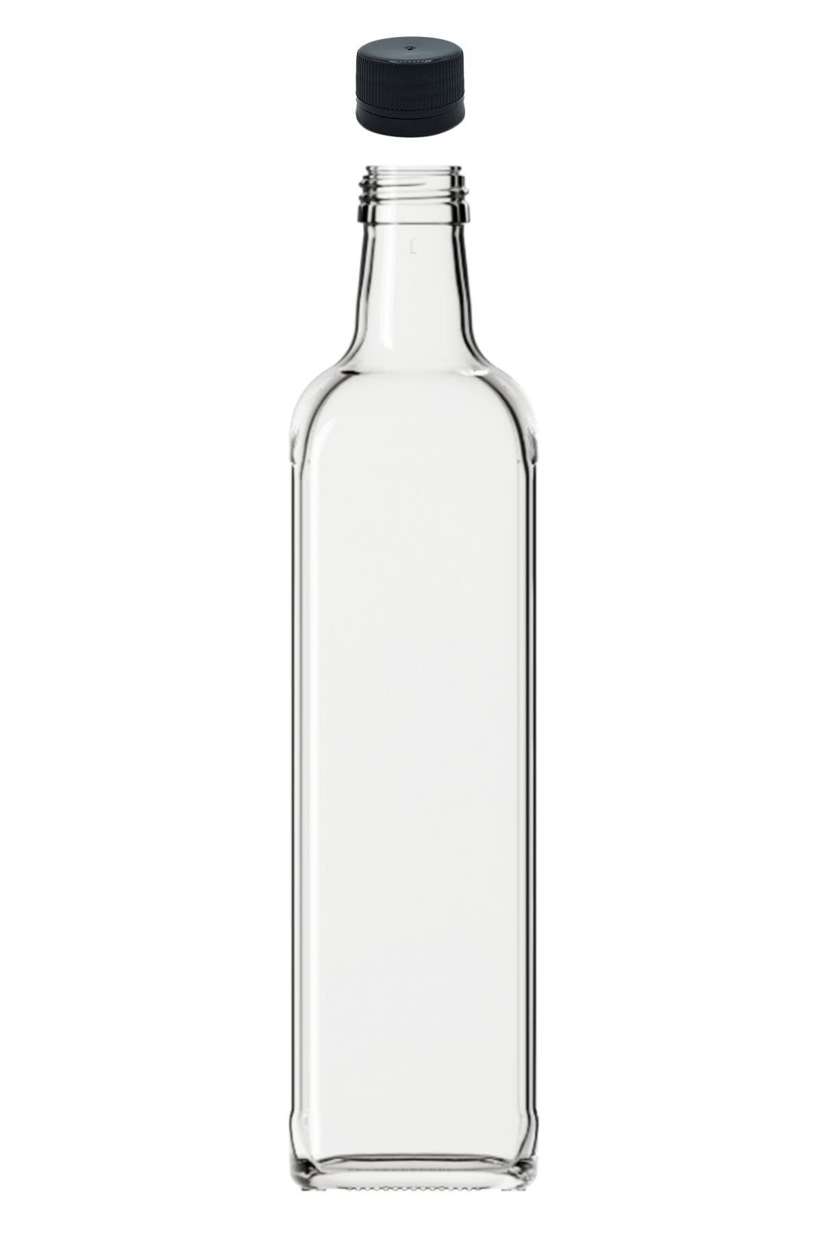 1000cc Şeffaf Maraska Köşeli Cam Şişe Kapaklı