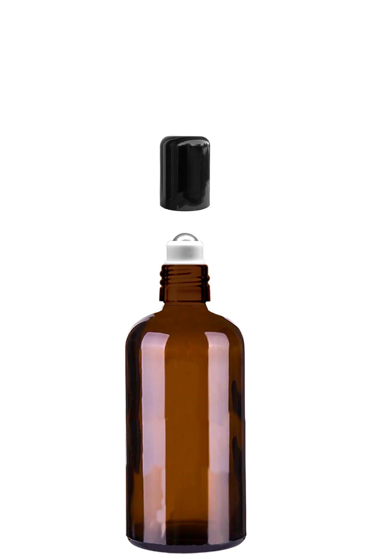100cc Siyah Çelik Roll On Amber Cam Şişe