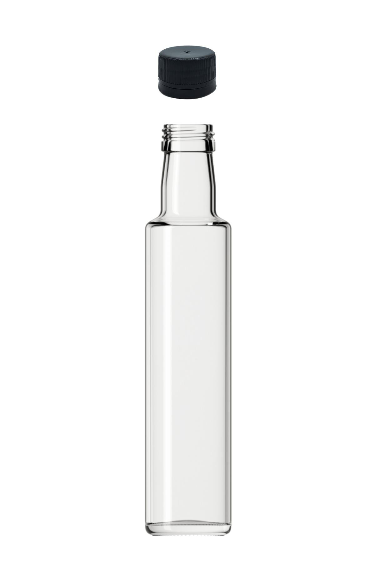 250cc Şeffaf Dorika Yuvarlak Cam Şişe Kapaklı