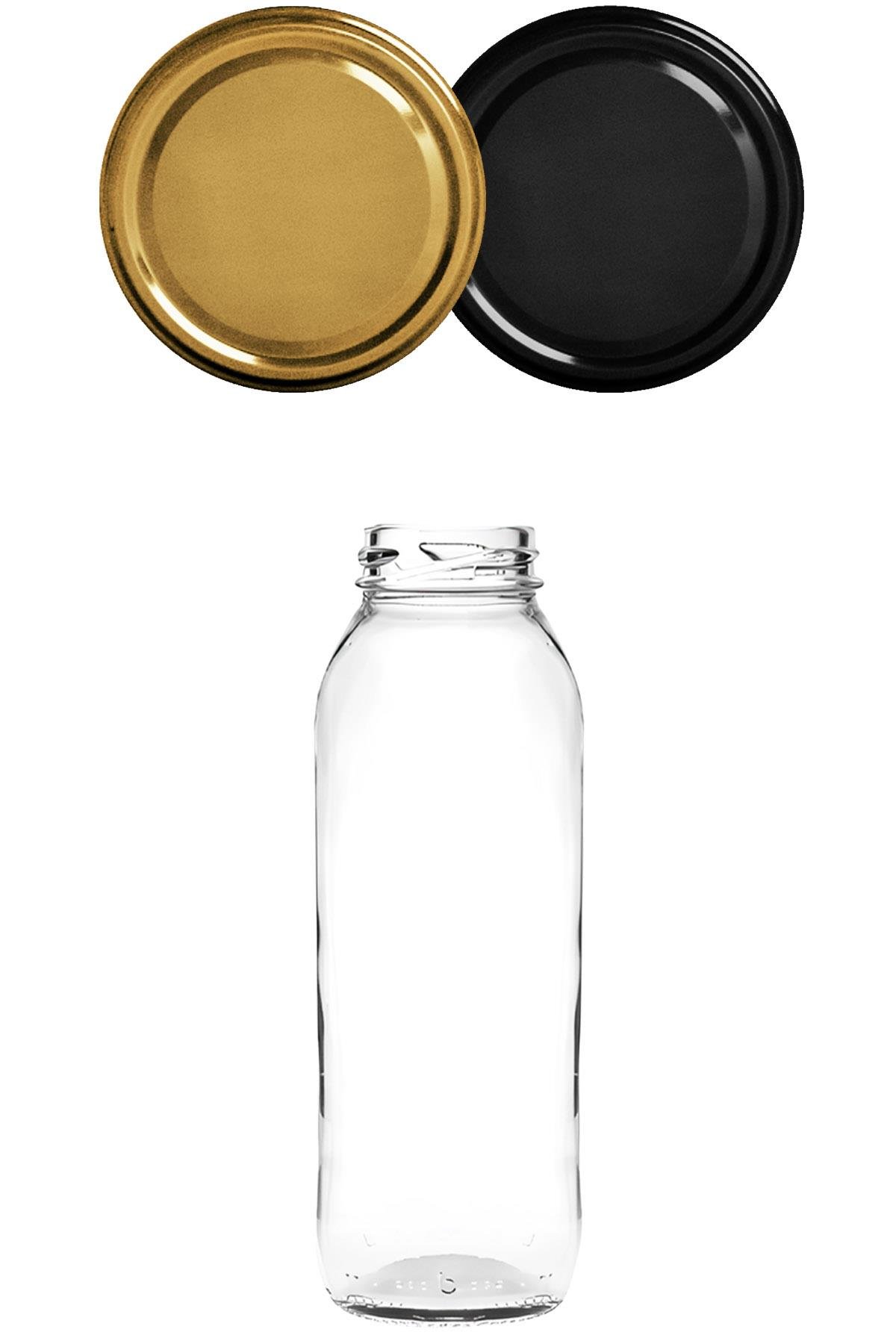 250cc Metal Kapaklı Şeffaf Meyve Suyu Cam Şişe