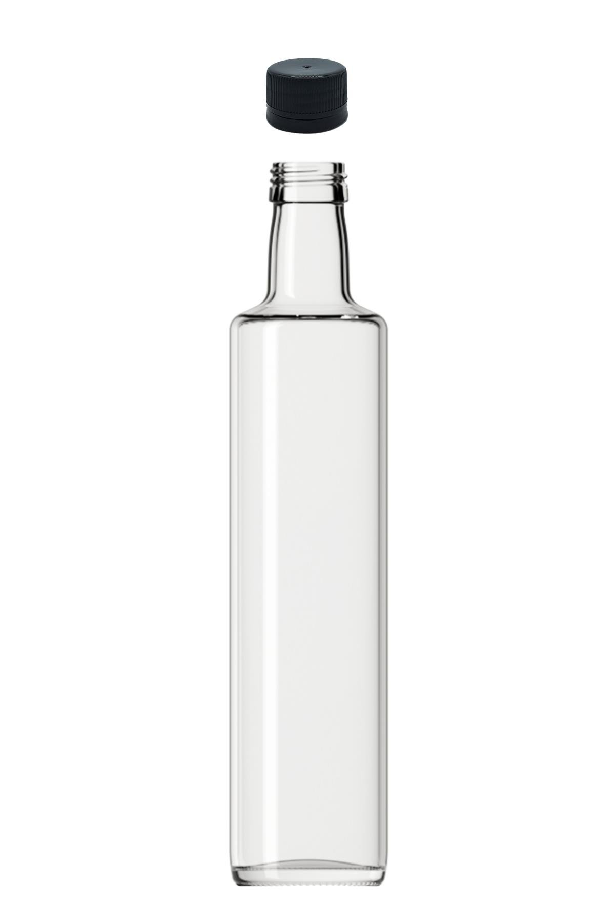 500cc Şeffaf Dorika Yuvarlak Cam Şişe Kapaklı