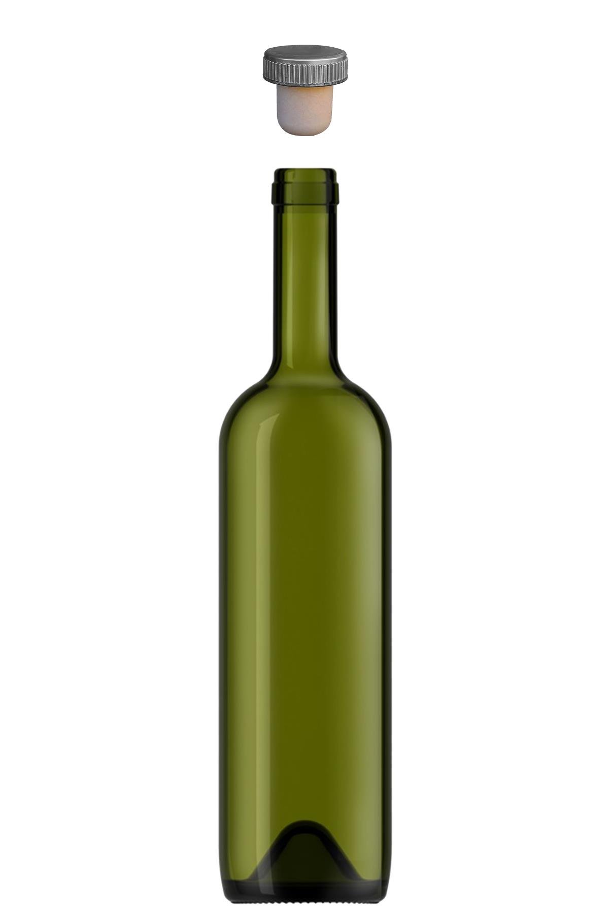 750cc Yeşil Şarap Cam Şişe Sentetik Tıpalı
